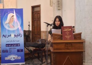 خلال القداس، ألقت السيدة رندلا سلامة مسؤولة مكتب راديو مريم في حمص كلمة، جاء فيها: