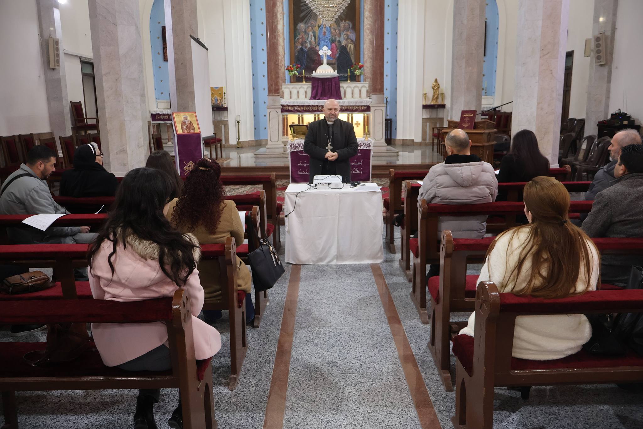 استقبلت مطرانية السريان الكاثوليك بحمص كهنة وراهبات ومسؤولي مراكز التعليم المسيحي للمنطقة الوسطى نهار السبت ٢٨ شباط ٢٠٢٦ في لقاء هام يهدف الى تعزيز الشراكة والتواصل بين الكهنة والراهبات ومسؤولي المراكز من أجل فهم واقع التعليم المسيحي الحالي ومتطلباته واحتياجاته ومناقشة المقترحات للمسيرة المستقبلية للتعليم بما يخدم استمرار الرسالة و تجددها ، و يسلك سبل الاستفادة من التقنيات الحديثة لنقل بشرى الخلاص.